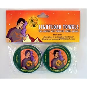 The world renowned Lightload Towels are the only towels that are survival tools. Use them as a towel, wash cloth fire starter, first aid supplement, diaper, insulator, static electricity insulator, mask and more. They pack down to 1.5 in diameter and 5.75in girth and 1.2 in width.They're great for packing in tight spaces like suitcases and small pouches. They weigh a mere .3oz so very helpful where weight is a concern like in travel or backpacking. Waterproof packaging covers each piece so you always have a clean dry cloth which is good for hygiene, personal care and first aid. The material is 100 percent viscose which is made from cellulose(not oil, like microfiber). It's the most absorbent material you can buy. They are also the most energy efficient towels in that they need little energy to carry, wash and dispose. Add water to the towel or start wiping water off of you to soften and open easier. They're very soft against the skin so great for the gym and spas. Machine wash the towels very delicately or handwash. Keep dry when possible. The towels are reusable and will last until they don't. This two pack is a great gift, and is easily mailed. Colors of the towels are assorted. Golfers can freeze to make a cold towel. Great as a game piece too on rainy days. Use as a checkerboard or puck. Boy Scouts and kid campers love this feature. Lightload Towels have been written about in many magazines including Climbing Magazine,Bike Magazine and Sailing Magazine.